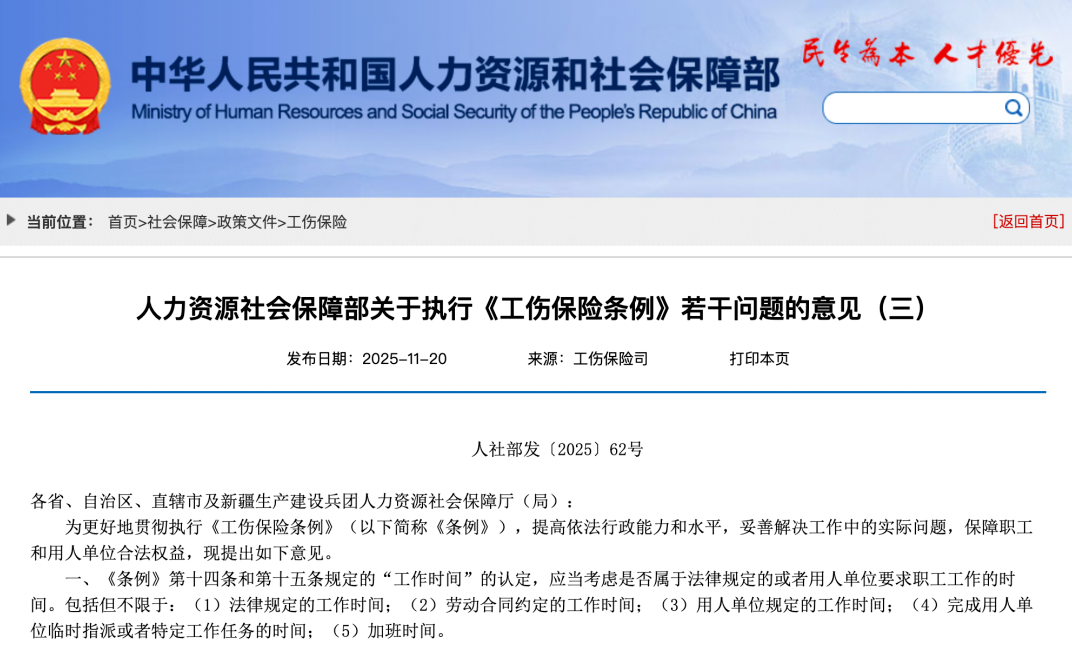 人力资源和社会保障部对外发布关于执行《工伤保险条例》若干问题的意见(三),进一步解决工伤保险实践问题,更好保障职工和用人单位合法权益。