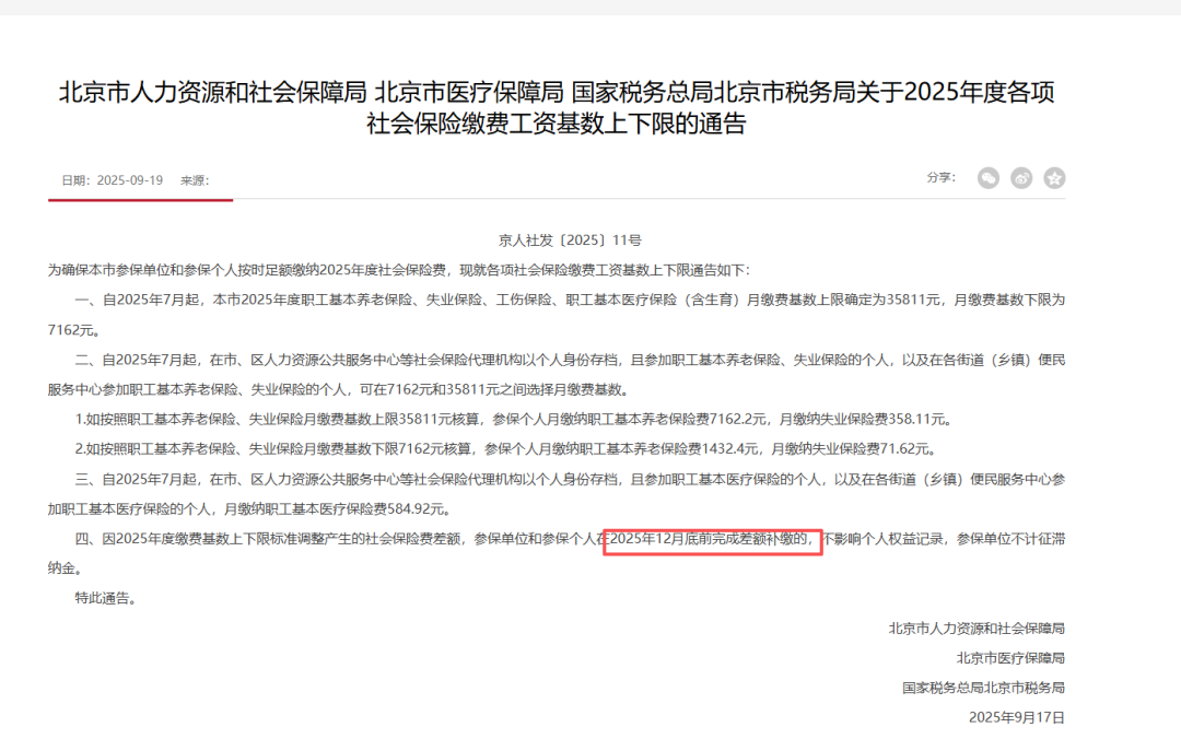 共性要求:补差部分可在2025年12月底前完成缴纳。