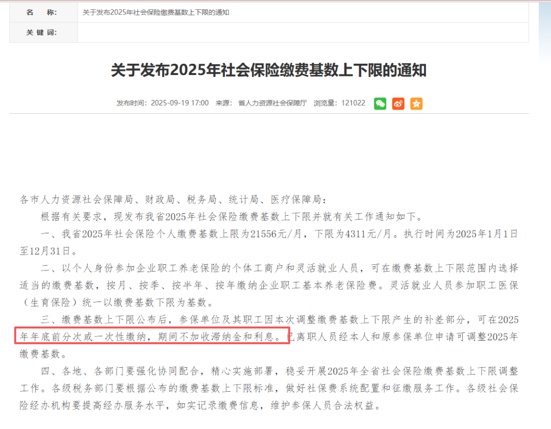 2025年度社保缴费基数