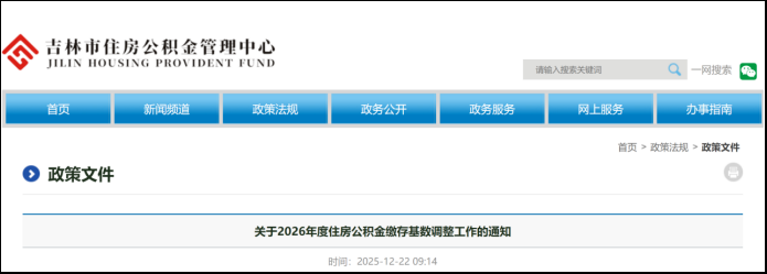 2026年度职工住房公积金缴存基数调整业务自2026年1月1日起可以办理。