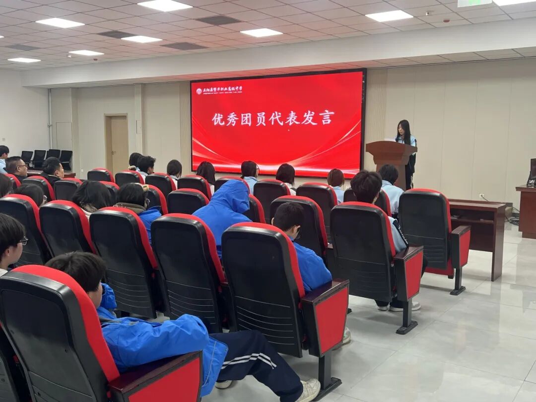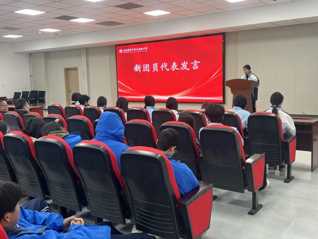 新团员代表李林钰同学满怀激动地走上发言台,分享了自己加入团组织的喜悦与自豪。她坚定地表示,将时刻以团员的标准严格要求自己,勤奋学习专业知识,刻苦锤炼技能本领,努力在学习和生活中发挥模范带头作用,绝不辜负团组织的培养与信任,用实际行动践行青春誓言。