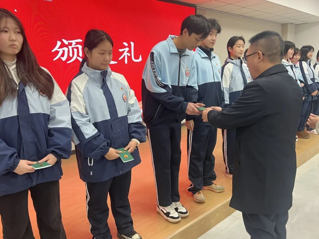 新团员们精神抖擞,有序登台。李校长将崭新的团员证逐一郑重递交到他们手中。这小小的证件,承载着组织的正式接纳与信任寄托,更象征着新团员们成长道路上的一个全新起点。接过团员证的那一刻,他们的眼中闪烁着自豪与责任的光芒。