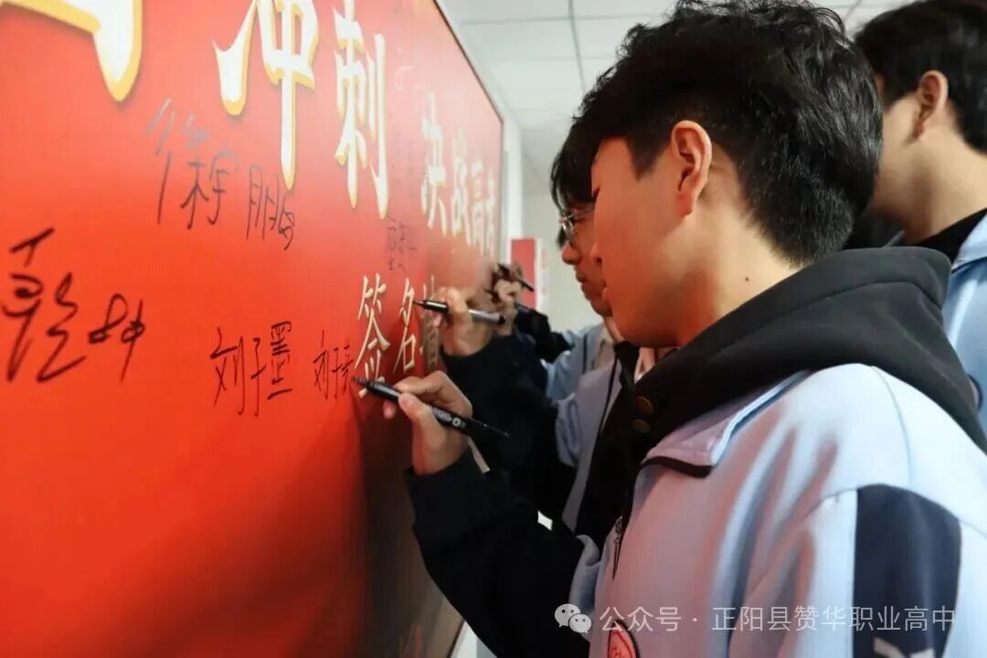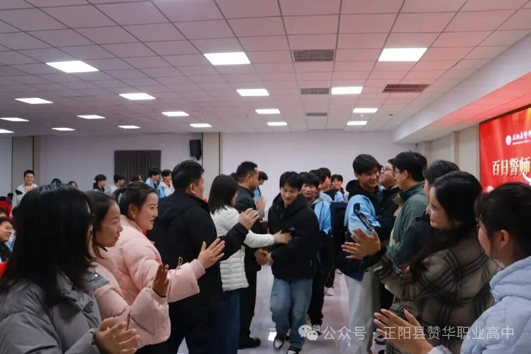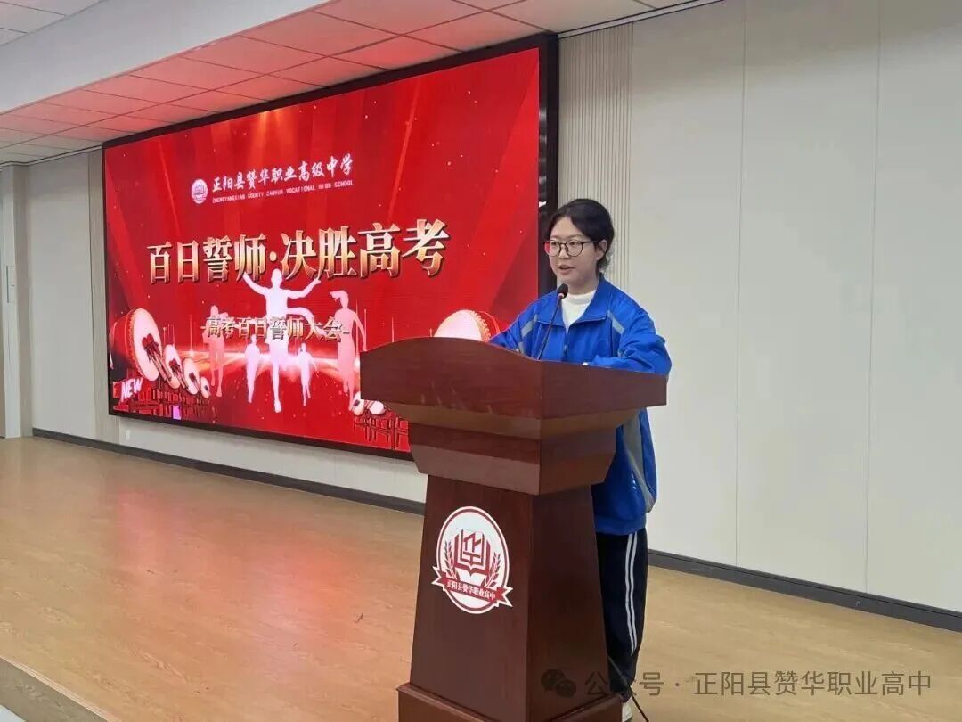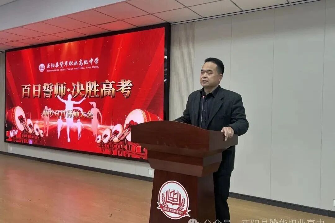 号角催征,为梦起航!在庄严的国歌声中,正阳县赞华职业高中“高考百日誓师大会”于2025年11月18日隆重举行。全校师生齐聚报告厅,共同见证这一庄严时刻,为高三学子凝聚力量、点燃斗志,拉开百日冲刺的序幕。