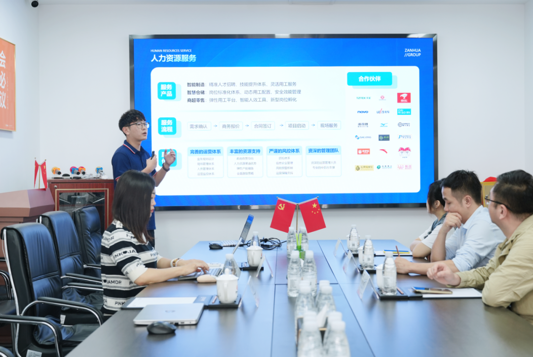在座谈会上,人事行政中心曹家辉代表集团,深入介绍了集团的发展轨迹和业务板块。赞华集团的业务涵盖人力资源、数字人才、教育培训、电子商务、物流配送、精工科技、环保科技以及企业发展等多个重要板块。依托专业服务与创新模式,赞华致力于为合作伙伴提供高效、数智化的定制解决方案,助力企业在市场竞争中脱颖而出,实现降本增效与可持续发展,并在人力资源服务领域取得了多项行业认可的成果。