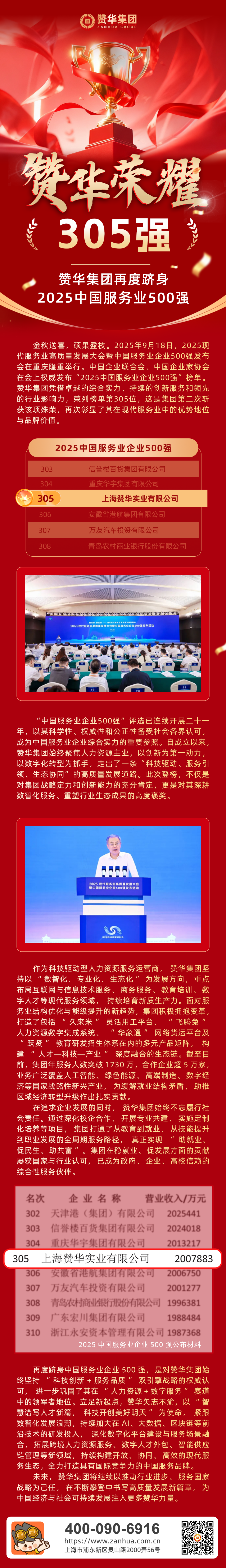 赞华荣耀 | 305强!赞华集团再度跻身2025中国服务业500强