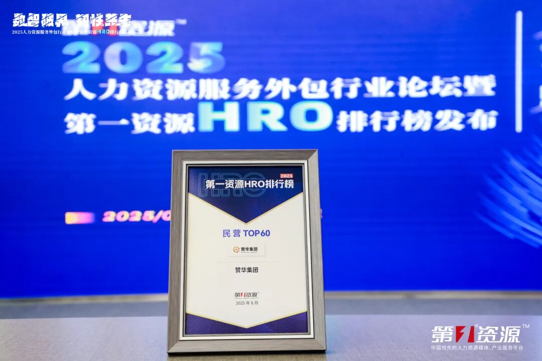 2025年8月28日,“数智破界·韧性共生——2025人力资源服务外包行业论坛暨第一资源HRO排行榜发布”活动在上海成功举办。赞华集团凭借卓越的服务质量、持续的创新能力和领先的业务模式,再度荣登“2025第一资源HRO排行榜民营TOP60”,充分彰显了集团在人力资源服务领域的综合实力与行业标杆地位。