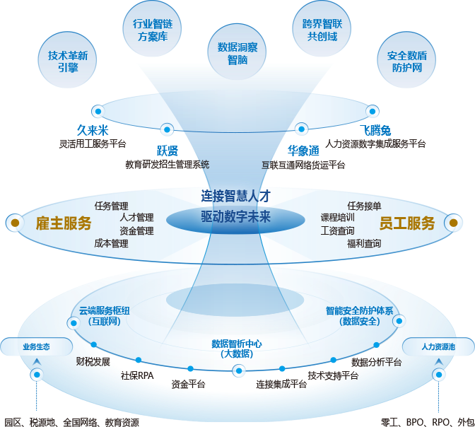 伴随数字化浪潮,赞华积极融入科技赋能,将大数据、云计算、人工智能等前沿技术深度应用于人力资源服务全流程,重构服务模式、提升服务能级。旗下自主研发的“久来米共享经济灵活用工平台”,以创新用工模式帮助企业降低用工成本、提升人效,灵活响应多样化用工需求;“飞腾兔”人力资源数字集成平台,通过数字化手段整合信息资源,实现高效、便捷的一体化人力资源管理;“华象通”互联互通网络货运平台,以优化物流链路为核心,显著提升配送效率、降低企业运营成本;而“跃贤”教育研发招生管理系统,则专注于教育领域,以智能化管理工具提升招生效能与资源利用效率。